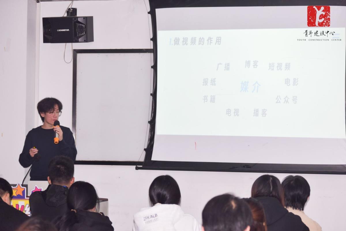 紧接着,陈粤洋介绍了视频剪辑的内容选取。他以学校开展的交响音乐会为例,讲解了后期制作的作用,并给团干部们展示了视频的完整制作过程。