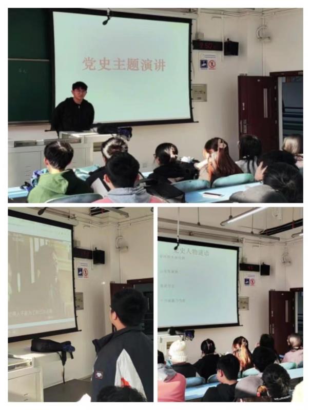 赓续红色血脉,熔铸精神之源。团支书刘雯采取了猜谜语、主题演讲、红色配音等丰富多彩的方式,带领同学们回顾党史。在猜谜语环节巧妙地将党的历史和相关知识融入其中,让同学们在思考中重温了那段光辉历程;在主题演讲环节,同学们深情讲述了革命先烈的英勇事迹,让大家更加珍惜当下的幸福生活;在红色配音环节,同学们身临其境地感受到了那段历史的真实,在聆听中感受到了那段历史的厚重和伟大。