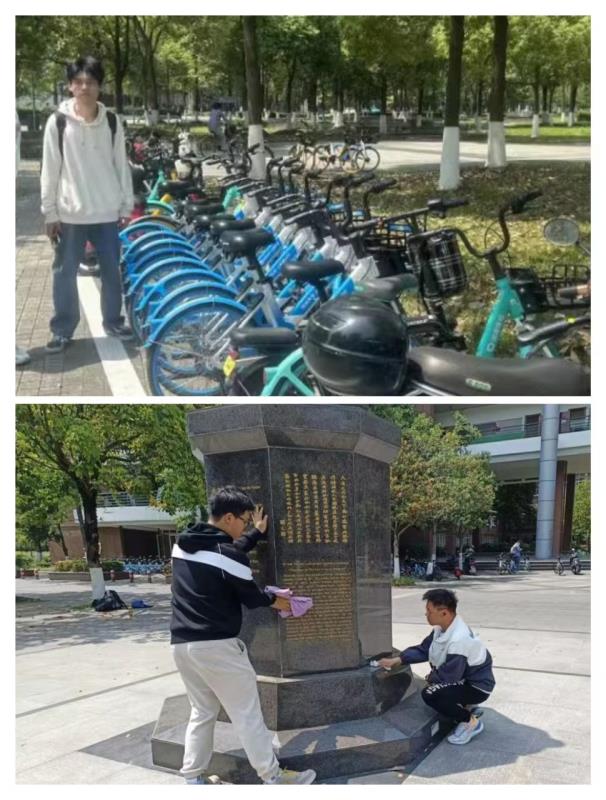 烽火青春,行动照亮。团支部组织支部团员青年在校园内开展摆单车、擦雕塑、捡垃圾等志愿活动,看似微小的行动却能让大家更加深刻地认识到作为青年人的使命与责任,用实际行动为校园增添了一抹亮色,展现当代青年的风采。
