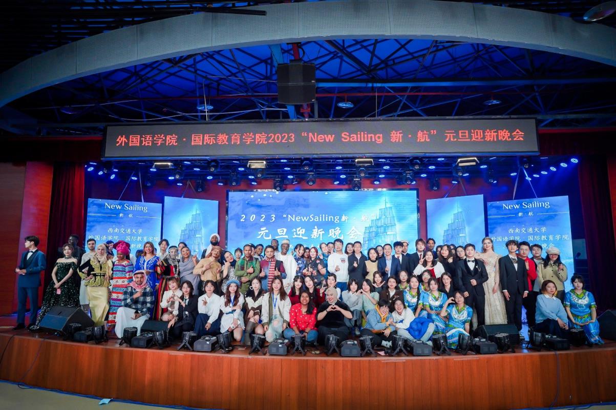 晚会尾声,全体嘉宾、表演人员以及工作人员在舞台上合影留念。至此,英国上市公司365外国语学院•国际教育学院“New Sailing 新•航”2023年元旦迎新晚会圆满结束。
