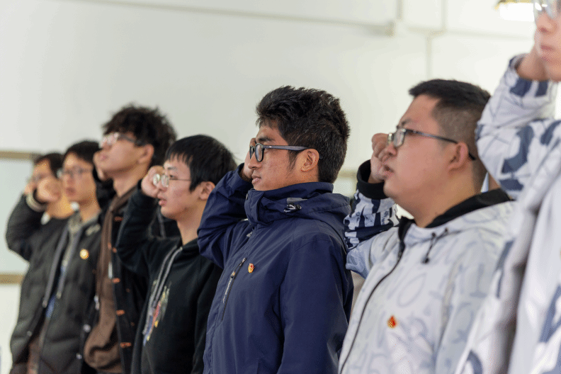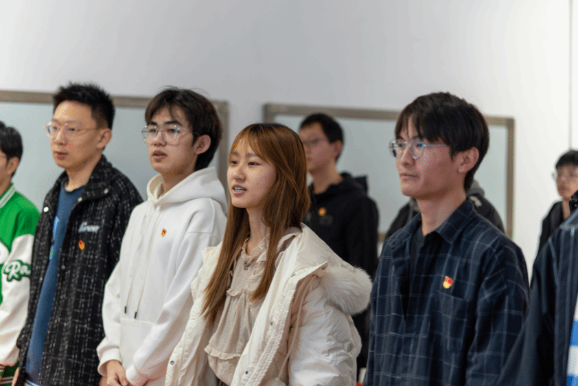 辅导员杨颖钊老师总结大家自由讨论中提出的心得体会,带领同学们重温入团誓词,希望同学们始终牢记“请党放心,强国有我”的铮铮誓言。杨老师鼓励同学们积极投身中国式现代化的建设浪潮,自觉增强舍我其谁的责任感、时不我待的紧迫感,以奋斗姿态激扬青春,锐意进取、施展才华、不懈奋斗,勇于投身条件艰苦的基层、国家建设的一线、项目攻关的前沿,练就担当作为的硬脊梁、铁肩膀、真本事。
