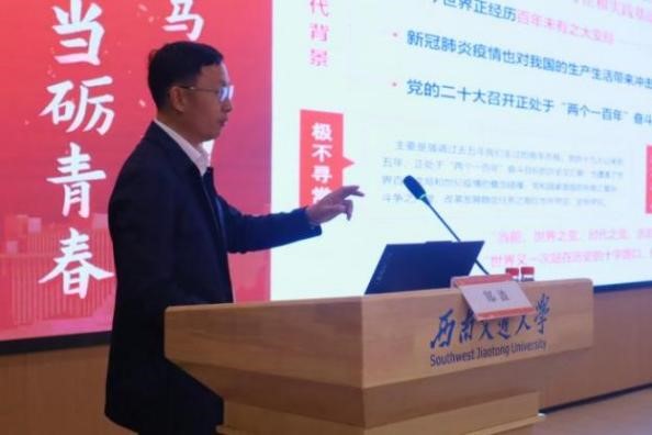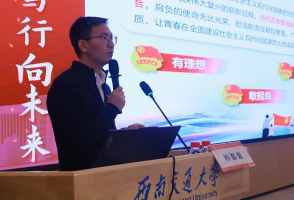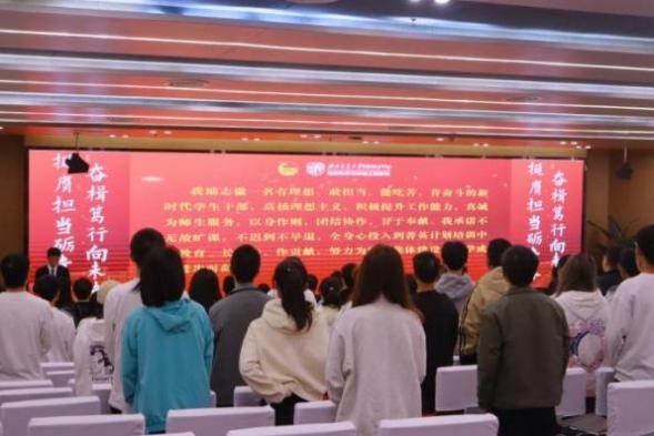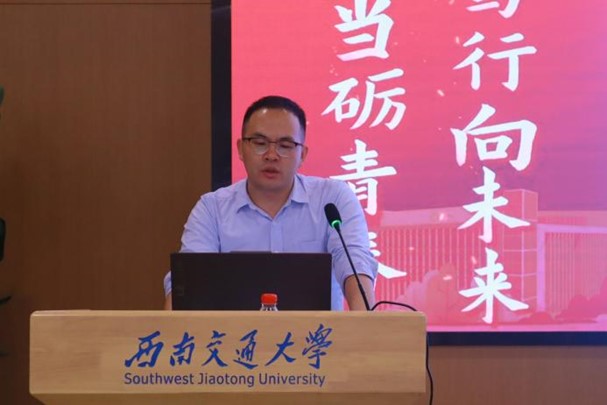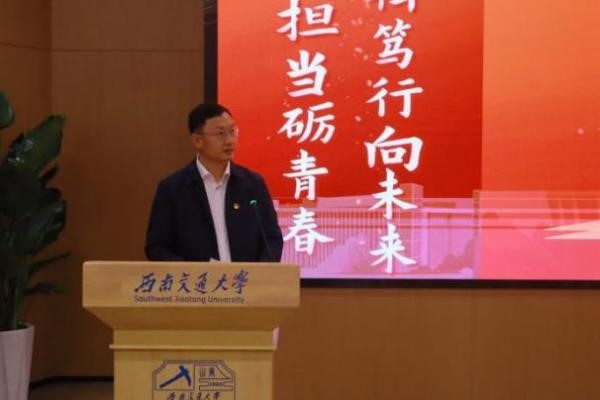 活动第二项为培训第一课。由党委副书记郑波老师从主题教育的重大意义、目标任务、主要安排等方面作学习贯彻习近平新时代中国特色社会主义思想主题教育团课,接着团委书记杨都强老师就《挺膺担当•团结奋斗,争做新时代优秀学生干部》这一课题进行专题讲座,呼吁同学们成为有格局、有情怀、有视野、有担当的新一代西南交大人。