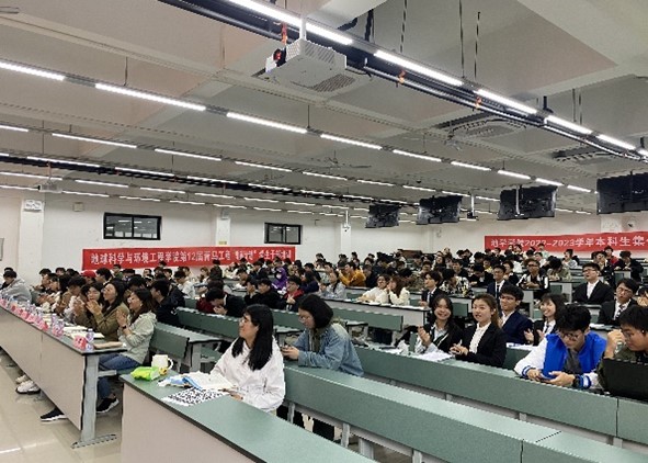 活动第一项为开课仪式。由主持人吴佳朔介绍参会领导及嘉宾,参与本次活动的领导及嘉宾有:地学学院党委副书记郑波老师、地学学院团委书记杨都强老师、地学学院辅导员老师们、地学学院2023级全体新生班团干部以及非新生换届干部。地学学院党委副书记郑波老师就“挺膺担当砺青春,奋楫笃行向未来”这一主题进行讲话,提出对全体班团干部的期待;地学学院团委副书记李婧老师对地学学院团学组织及班团工作进行介绍,对团学干部能力水平提出更高要求;地学学院辅导员李林遥老师从课程目的、课程内容、课程要求三个方面展开介绍菁英计划课程。