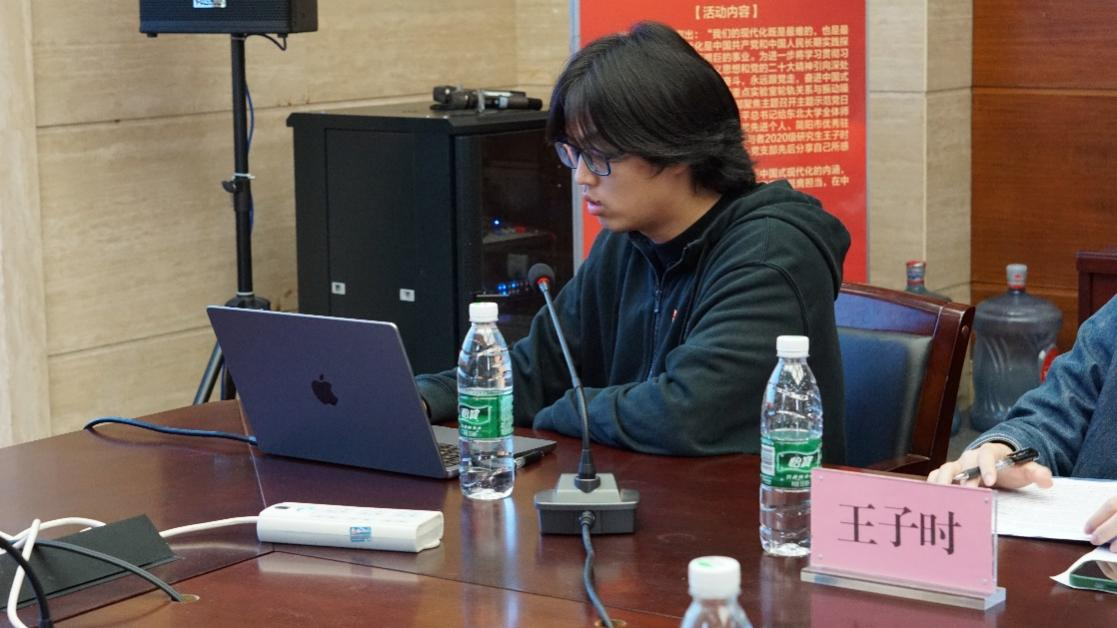 随后,2020级硕士王子时同大家分享了自己的“西部计划”支教经历和感悟。支教一年中,他见证了达州市渡市中学的变化,也加深了乡镇教育发展和志愿服务的认识。他说道:“以‘西部计划’为代表的中国青年志愿行动,把社会中最积极、最能动的个体凝聚在一起,成为把广大青年‘团结、组织、动员起来’的有效载体,为推动实现中国式现代化做出了重要贡献。”