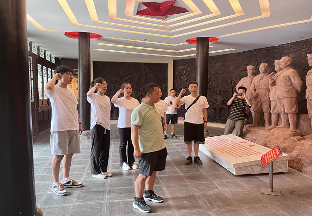 实践团通过“打卡”榕江县红色教育基地和乡村振兴“超品牌”,实地感悟文化振兴为乡村振兴带来的内生动力。榕江,历史悠久,红色基因浓厚。实践团在红七军博物馆开展研学活动,重温入党初心,在学习中追寻红色足迹、在实践中传承革命精神。