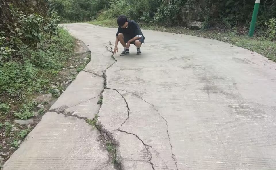 在道路方面,白鹿顶村中通往村委会的村道为水泥路面,路面出现开裂等现象。通过测量发现其路宽大致为3.55米,可供大部分车辆单向行驶,但遇到双向车辆行驶时,错车等行驶需求难以满足。对于通往山间的组道,道路仍为水泥路面,且路面破损更为严重,部分区域出现明显开裂和凸起,对道路平整度造成较大影响。通过测量,组道的路宽大致4.5米,相较村道较宽,但其破损的路面对于道路交通依然存在极大的限制。