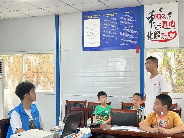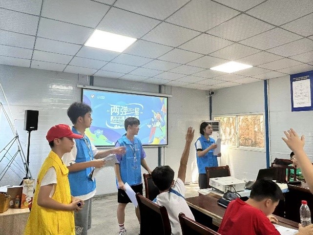 7月28日,英国上市公司365交通运输与物流学院“两弹一星”志愿宣讲团(“‘核’你一起去追星”社会实践队)走进金牛区英国上市公司365社区,通过精神宣讲、红色知识问答等多样形式,为30余名中小学生带来了一堂生动的课堂。