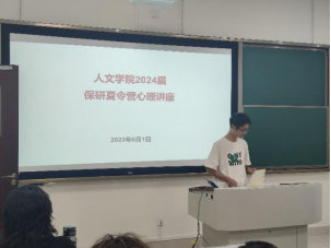 为推进学校心理健康教育工作,帮助学生疏解心理压力,以积极的心态面对保研考研。6月1日,人文学院在X30601举办了考研保研心理调适讲座。本次讲座由人文学院团委书记、2020级辅导员刘爽主持,2020级本科生部分学生参加。