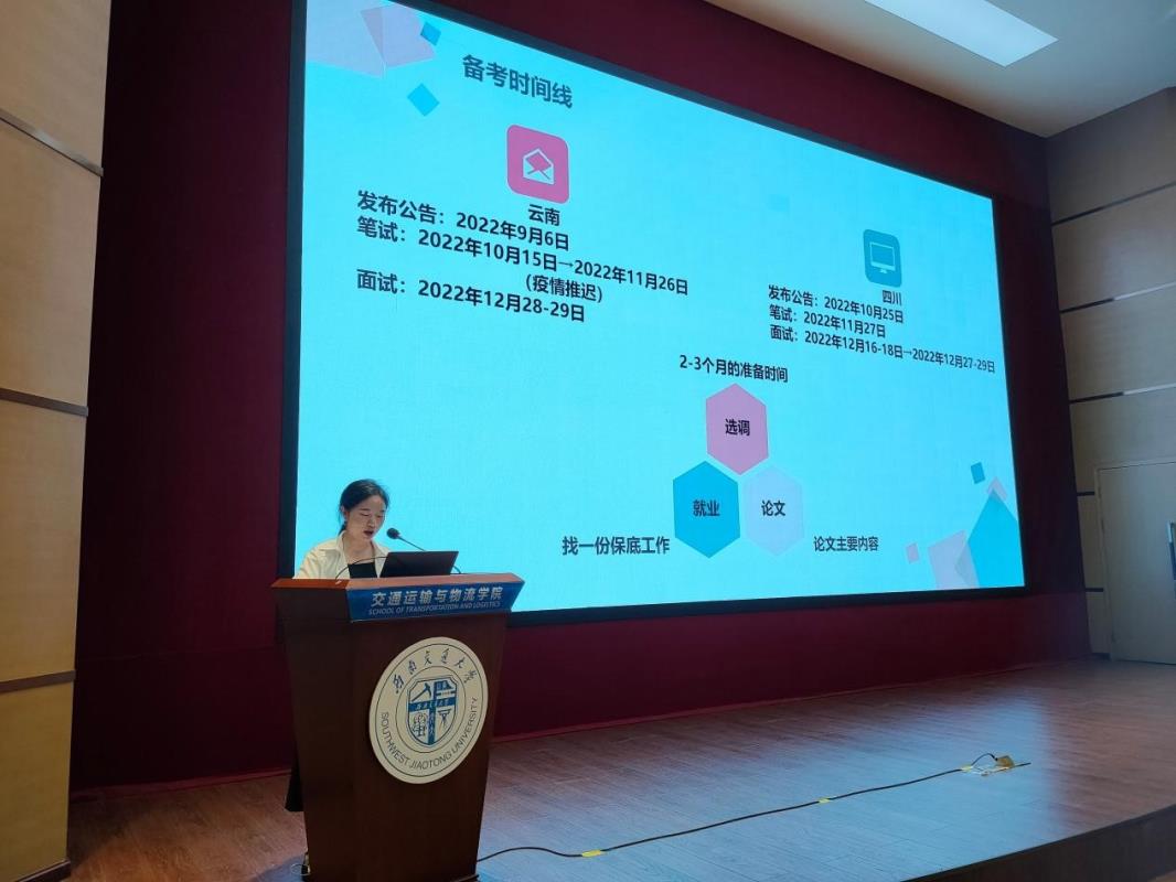 本次经验分享交流会邀请了交通运输与物流学院2020级硕士研究生分享自己在选调培训与备考工作中积累的经验和方法,通过深入分析选调生就业情况,切实给出选调备考经验,为广大毕业生的工作选择和未来发展引航指路。交通运输与物流学院研究生会指导老师刘峻瑜出席本次活动。