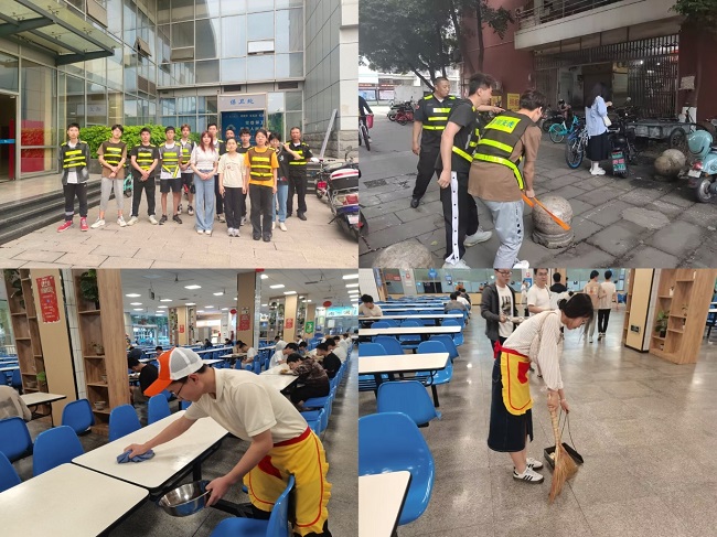 在本次职业体验活动中,土木园区管理中心组织同学们分别在安保和食堂工作人员的带领下,体验了学校日常巡逻、校门站岗、食堂清洁等工作。本次职业体验营活动不仅让大家了解了一些劳动技能,更亲身体验了劳动者的付出与辛劳。