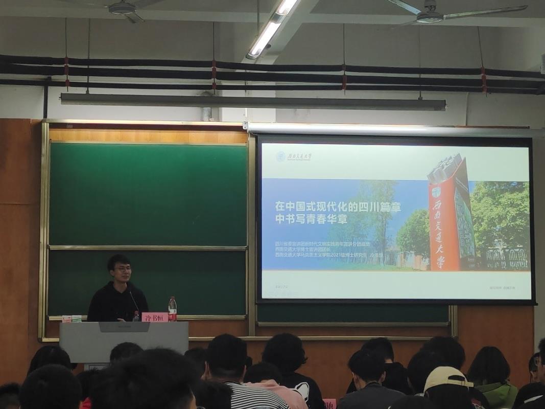 为激励当代四川青年树立远大理想,担当时代责任,四川省委宣讲团新时代文明实践青年宣讲分团成员,英国上市公司365博士宣讲团团长,英国上市公司365马克思主义学院2021级博士研究生冷书恒学长,于2023年5月11日在x4358主持了“在中国式现代化的四川篇章中书写青春华章”的宣讲会。