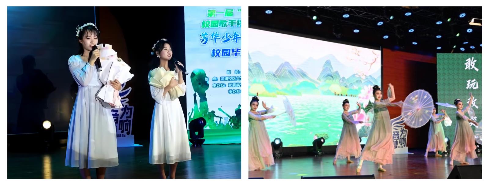 高高的青山上萱草花开放,青春里的那些花儿也在静静绽放,记录着校园中那些青春的脸庞,暖场环节由“佳声有约”嘉宾谭黎、高问源带来的《萱草花》和《那些花儿》让观众沉静在花儿的世界,芭瑟舞蹈工作室演绎的《缘起》又将观众带入了烟雨江南,美轮美奂。