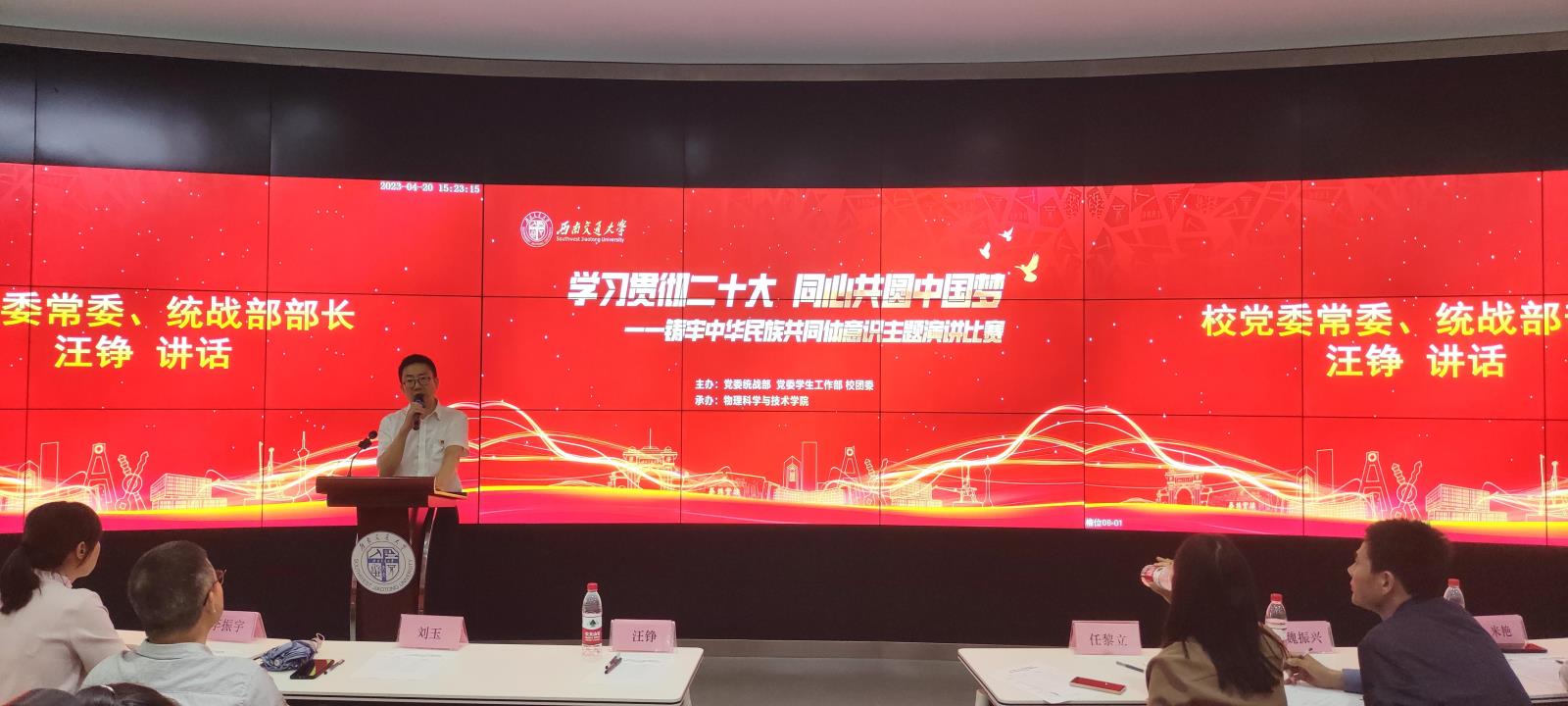为了贯彻落实党的二十大精神,加强铸牢中华民族共同体意识教育,4月20日下午,英国上市公司365举办了“学习贯彻二十大 同心共圆中国梦”主题演讲比赛。学校党委常委、统战部部长汪铮,统战部副部长任黎立,物理科学与技术学院党委书记刘玉,党委副书记魏振兴出席,来自党委学生工作部、校团委、相关学院老师及参赛选手亲友等近百人参加活动。