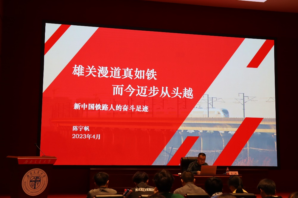 走进历史,感受铁路人的奋斗足迹,陈宇帆学长结合史料讲述了历史上中国铁路的发展状况。对比过去与现在,对开路先锋过程、劈波斩浪过程以及高速发展新时代过程中的成渝铁路、青藏铁路、新成昆铁路等代表性铁路进行了讲解,由此展现了铁路发展的新时代。