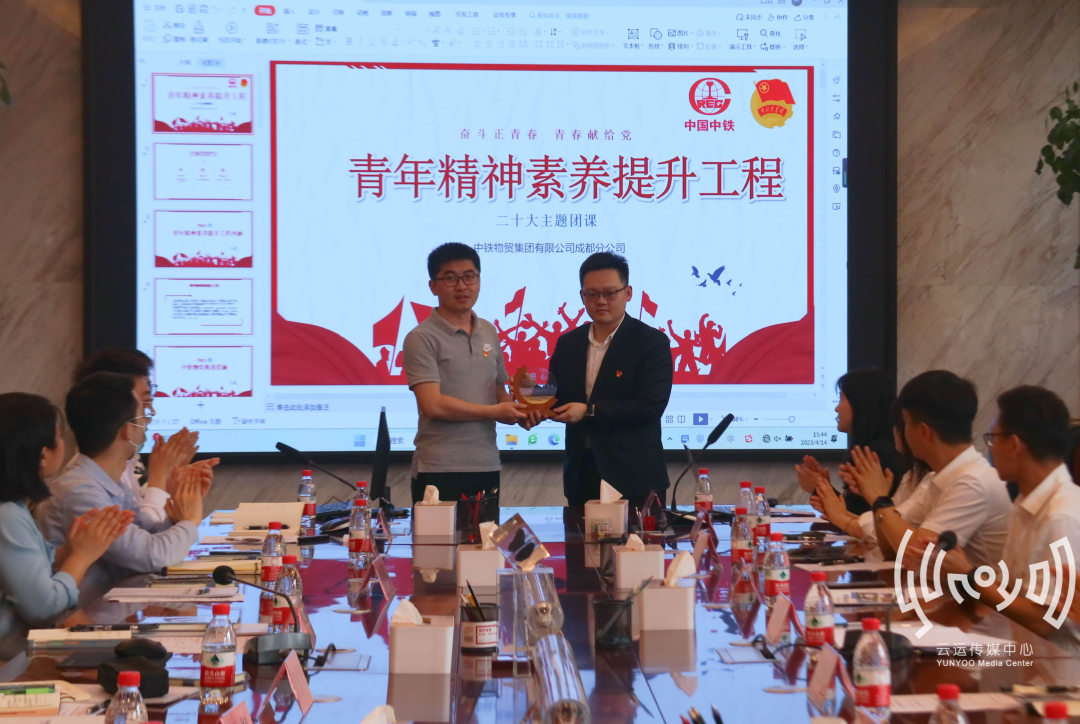 中铁物贸成都分公司团委副书记刘韵表示,此次活动是为了促进校企合作,营造文化互通、青年共同的局面,是落实党中央、团中央的重要指示,共同推进青年精神思想提升工程。刘韵介绍了中铁物贸成都分公司的基本概况、业务、产品、承担项目等方面的内容。刘韵表示,党的二十大报告对青年寄予厚望,提出了全党要把青年工作作为战略性工作来抓,用党的科学理论武装青年,用党的初心使命改造青年,做青年朋友的知心人和青年群众的引路人。在发言最后,刘韵代表中铁物贸成都分公司向交学院送上纪念牌。