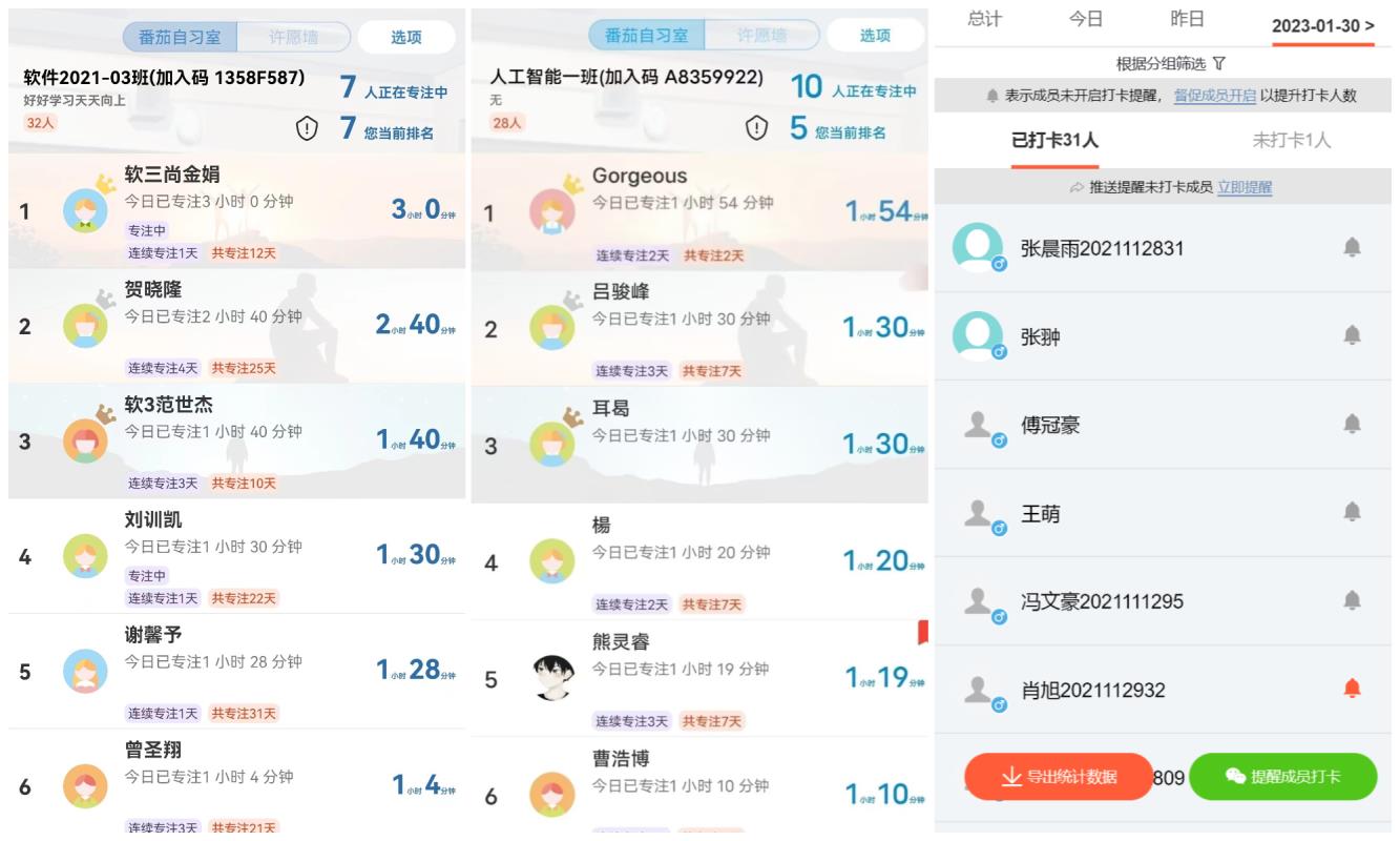 学业提升系列活动分为“专业课程提升”“英语能力提升”“编程能力提升”三项子活动,活动发出后,各班、团支部纷纷响应,组织开展形式多样的打卡、自习活动,学习委员建立“线上自习室”每日开展课程复习督促,邀请班导师、高年级优秀朋辈开展学习经验交流主题班会,巩固学习效果。