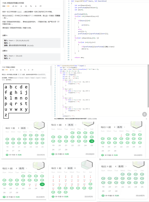 为了帮助同学们提高编程能力,提升专业素养,学院组织开展编程每日打卡活动。参与者需完成LeetCode网站上的每日一题并截图上传,活动发布后同学们积极踊跃参加,共计打卡完成编程题520多道,人均打卡超20天,进一步夯实了专业基础。