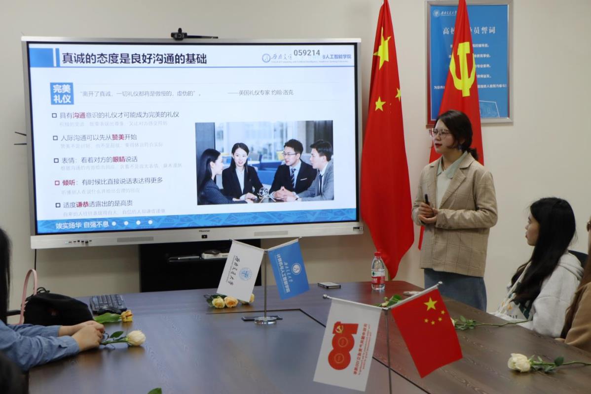 为深入学习贯彻党的二十大精神、学校第十五次党代会精神,在第113个“三八”国际劳动妇女节来临之际,3月7日晚,学院于X31424组织开展《优雅气质,从礼仪开始》女生专题讲座,促进以美育人,以礼立身。学院团委副书记徐洁主讲,学生助理团、“言+爱”合唱团等学生组织女生代表及少数民族女生代表参与本次活动。