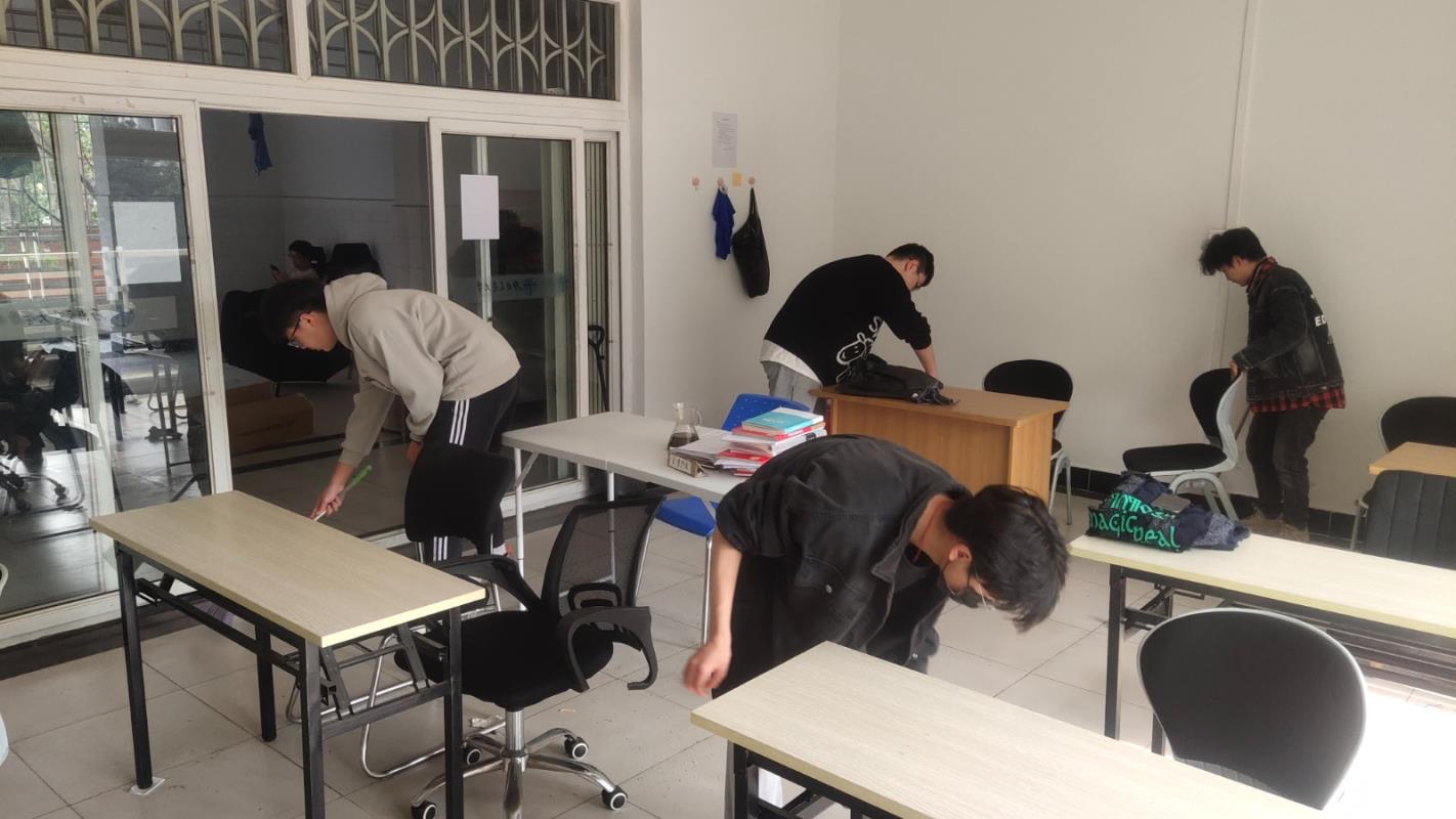 寒假期间自习室暂停开放,本次活动也是新学期第一次自习室清扫活动。志愿者熟悉了个人分工后,从自习室卫生情况入手,合作对自习室内地面、桌面、墙面的污渍进行清洁,检查了各电器的工作情况,重新张贴受损的志愿者工作说明,并共同组装了上学期末由学生会购置的新置物架,方便同学们临时收纳书籍杂物。志愿者们在为自习室增添亮色的同时,也收获了奉献互助、服务他人的快乐,以亲身实践领悟雷锋精神“为人民服务”的深刻内涵。
