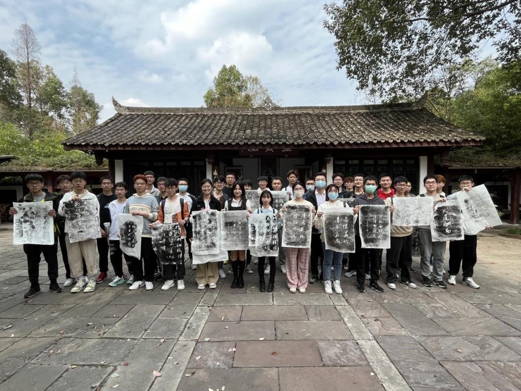 第二站是眉山三苏祠,同学们参观了富有四川特色的古典园林建筑,聆听了“三苏”家风家训、文化精髓以及廉政为民的相关事迹,学习了习近平总书记视察三苏祠时有关家风建设的重要论述。最后,同学们还体验了三苏祠碑廊拓印技艺,通过亲手从石碑上拓印下“三苏”诗句,深层次感受了中华传统文化之美。