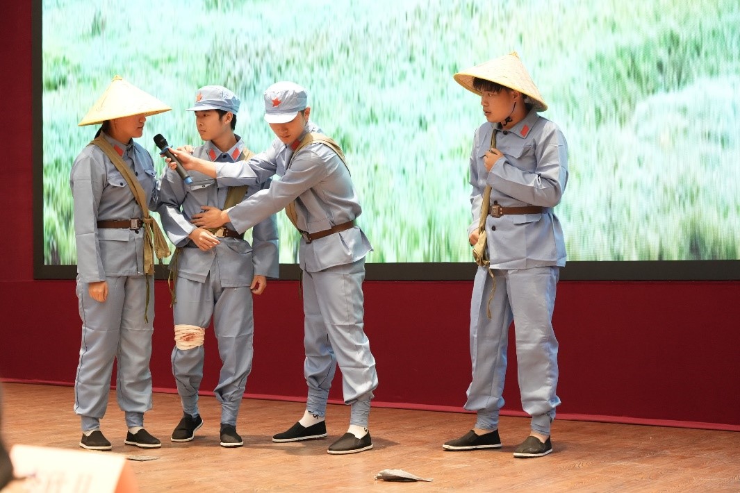 参与决赛的六个班级通过生动形象的演绎,重现了建党、建军、长征、抗击新冠肺炎疫情等重大历史事件,以青春热血诠释了一代代中国共产党人的责任与担当。