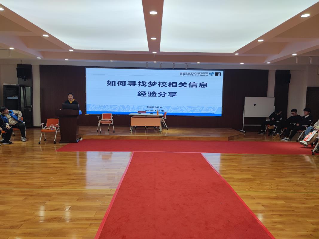 第三部分是留学资讯分享。机械(利兹)2020-01班团支部副书记李冉,为全体同学详细介绍了留学深造如何有效获取院校信息的方法以及备考出国类语言考试的方法,帮助心理2020-02班同学进一步了解留学信息,培养留学意识,拓展国际视野。
