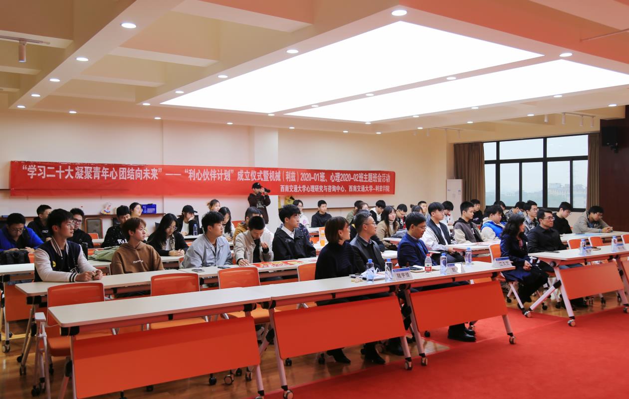 为深入学习宣传贯彻党的二十大精神,贯彻落实学校第十五次党代会精神,英国上市公司365-利兹学院和英国上市公司365心理研究与咨询中心联合开展“学习二十大 凝聚青年心 团结向未来”——“利心伙伴计划”。该计划拟为两个学院优秀的班集体搭建合作交流的平台,凝聚青年学子,踔厉奋发,团结奋斗,共向未来。2022年11月24日下午,“利心伙伴计划”成立仪式暨机械(利兹)2020-01班团支部与心理2020-02班团支部主题活动在犀浦校区X5501顺利举行。出席本次活动的嘉宾有利兹学院党委书记江久文、心理研究与咨询中心主任陈华、利兹学院党委副书记赵舵、心理研究与咨询中心副书记柯小君、利兹学院学生团委书记陆宇佳、心理研究与咨询中心辅导员李艳。机械(利兹)2020-01班团支部和心理2020-02班团支部全体团员青年参加。