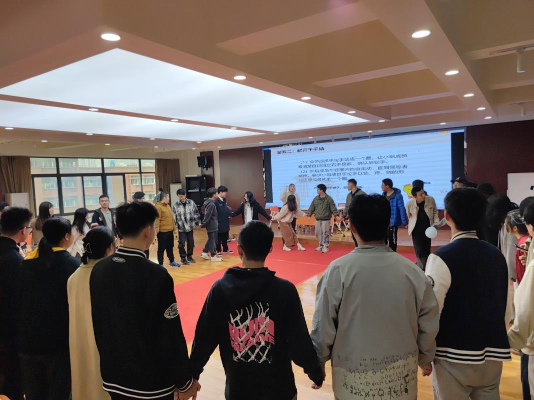 第二个部分,通过人际关系主题情景剧以及“地雷阵”“心有灵犀”“解压气球”等小游戏,心理2020-02班团支部带领机械(利兹)2020-01班团支部同学共同回顾生活中常见的人际交往问题和学业压力问题,介绍有效解压办法及人际沟通技巧。