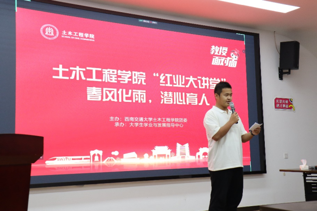 “闻智者言,启成才之路;听大师语,树鸿鹄之志。”2022年11月9日晚19:30,由土木工程学院学业与发展指导中心主办的“教授面对面”活动在X4407教室如期举行。活动采取讲座与互动的形式展开。本次活动有幸邀请到战友教授为大家分享知识与经验。让我们通过和教授近在咫尺的交流,追溯教授成功路上的点点滴滴,去挖掘其人生不一样的闪光点。这是一场启迪人生的对话,一次寻找自我的旅途。从教授的人生经验中,我们试着拨开层层迷雾,追寻自我梦想。百年土木,树人百年,土木工程学院“教授面对面”,为你答疑,为你解惑,为你带来一场思想交流的盛宴。