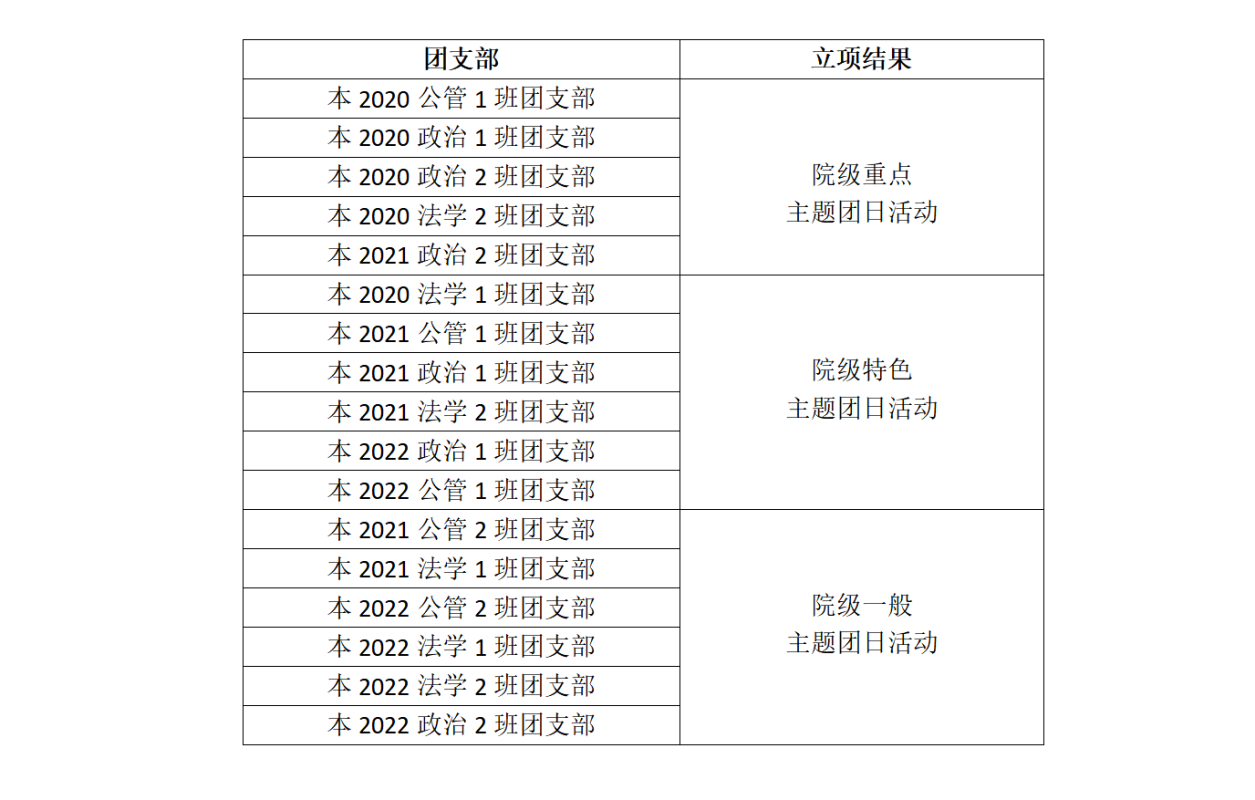 【公管】公共管理学院“喜迎二十大、永远跟党走、奋进新征程”主题团日活动立项结果公示