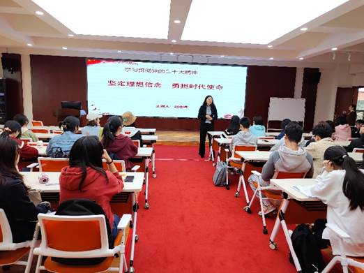 为深入学习贯彻党的二十大精神,开展好新生思想政治教育,让2022级新生坚定理想信念,敢于承担责任,心理中心于10月28日下午2点在X5501开展了“坚定理想信念,勇担时代使命”主题学习。本次专题学习由心理中心党委书记刘咏梅主讲,心理中心22级本研全体新生参加。