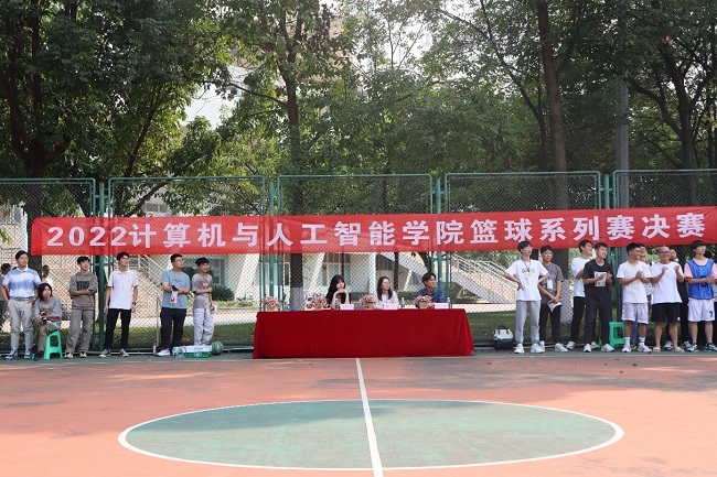 10月23号下午,计算机与人工智能学院本科新生篮球赛总决赛于北区篮球场举行。学院团委副书记徐洁、2022级本科生辅导员杨碧璇、李威及2022级各班学生到场,为参赛队员呐喊助威。