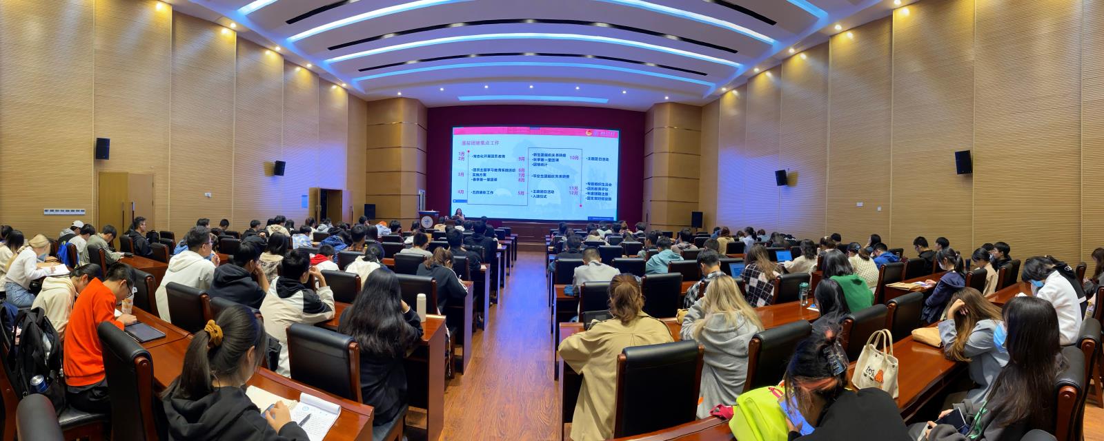 讲座培训伊始,何老师以习近平总书记在庆祝中国共产主义青年团成立一百周年大会上的讲话作为切入点,指出各团支部需全面推进“班团一体化” 建设,完善支委会与班委会协同工作机制,并对此做出了详细指导,强调了今年基层团建重点工作。