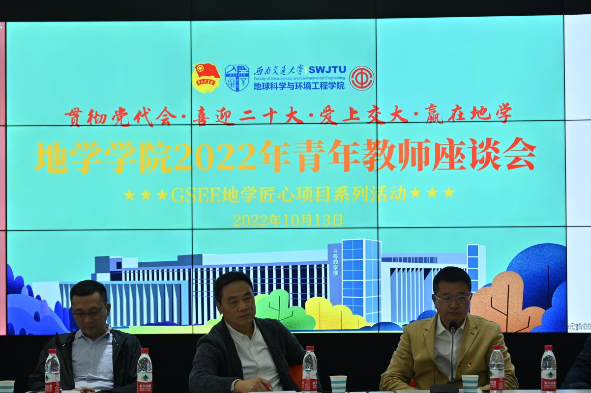 为迎接党的二十大胜利召开,深入贯彻学校第十五次党代会精神,增进地学学院教职工的认同感与归属感,凝聚奋进力量,建功新时代,10月13日下午,地学学院党政工团联合举办青年教师座谈会,出席本次活动的有学院党委书记关秦川,执行院长刘国祥,党委副书记、副院长许军华,党委副书记和纪委书记傅尤刚,副院长张玉春、赵晓彦、朱军,院长助理曹云刚等党政领导,院工会主席蔡红波、院团委书记杨都强等学院工会委员,学院各科室主任,及各系青年教师。