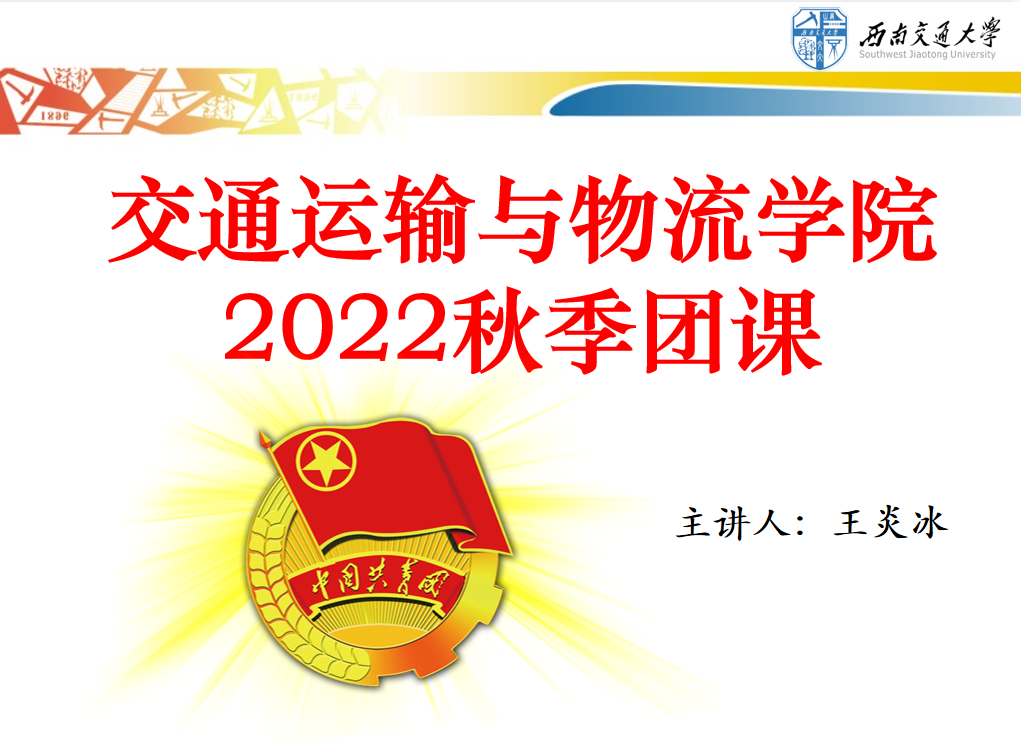 为迎接即将到来的中国共产党第二十次全国代表大会,强化团员意识,交通运输与物流学院团委于2022年9月8号16:00举办“喜迎二十大 永远跟党走 奋进新征程”主题线上团课,由交运学院团委书记王炎冰主讲,交运学院2022级全体本科生参与本次团课。