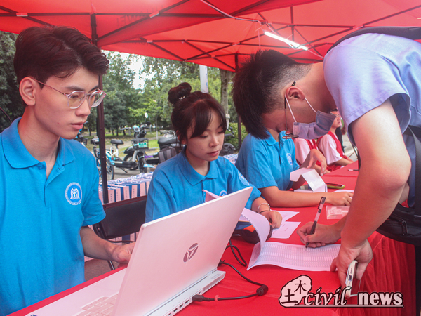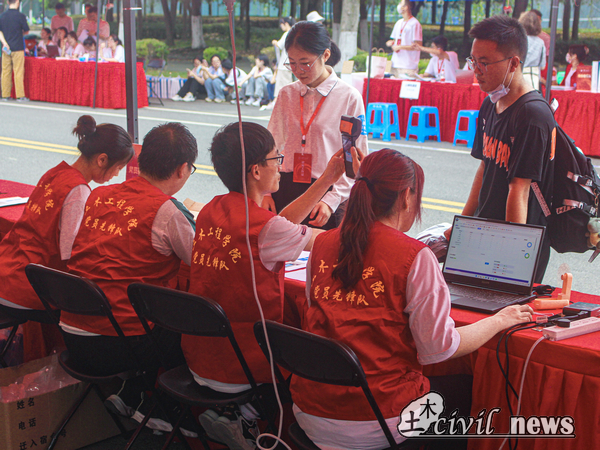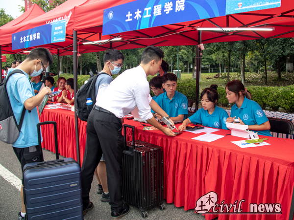 上午8时,迎新工作正式开始。本次迎新开放了南大门以及西南门以便同学们尽快达到报到场地,新生进入校园时无不洋溢着青春的活力,在迎新人员的引导下前往对应学院报到点领取新生大礼包。土木工程学院迎新大棚处的每一位志愿者都在自己的岗位上耐心地为新生办理入学手续,帮助新同学们解答相关问题,做好工作对接,保障迎新工作的顺利进行。