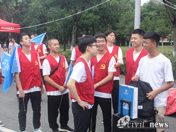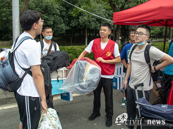 土木工程学院志愿者和助理辅导员们在新生报到后,带领着新同学熟悉着交大校园,引导大家前往各自寝室。与往年一样,今年由于疫情防控相关要求,学校倡导新生家长不进入校园,因此迎新工作者们不仅需要帮助新生解答报到时遇到的难题,同时还需要为新生看管搬运行李。土木工程学院志愿者们表示:“我们为新同学们的青春朝气感到喜悦,看到他们的笑脸我们也深受鼓舞,希望通过自己的力量让新同学们体会到交大的温暖。”