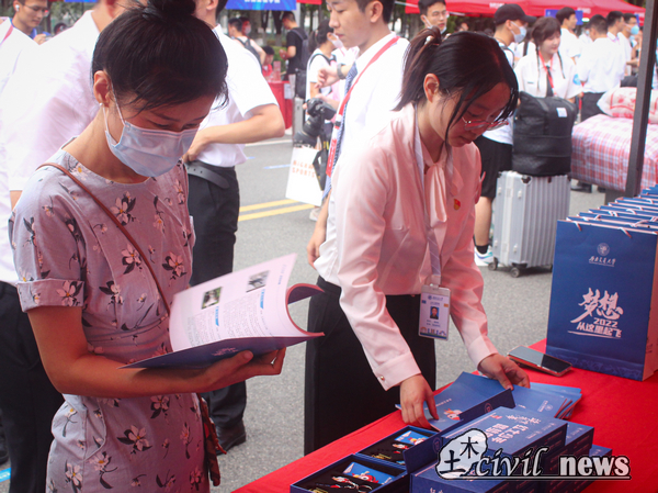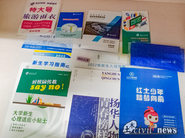 同时,在场工作人员也为师生们介绍了土木学院新生大礼包。今年的新生礼包中不仅包含了“红土少年,踏梦前行”礼盒一套(内含“竢实扬华书签”一枚、“土木学院院徽”一枚、“红小土卡套”一个、“红小土钥匙扣”一个),还附带新生手册一本(内含院长、书记寄语,以及学长学姐在学习、科研、竞赛、学生工作等各个方面的锦囊秘笈)。此外,在疫情背景下,学校也贴心地为新生准备了“医用防护口罩”、雨衣等生活物品,保障新同学们尽快适应大学生活。