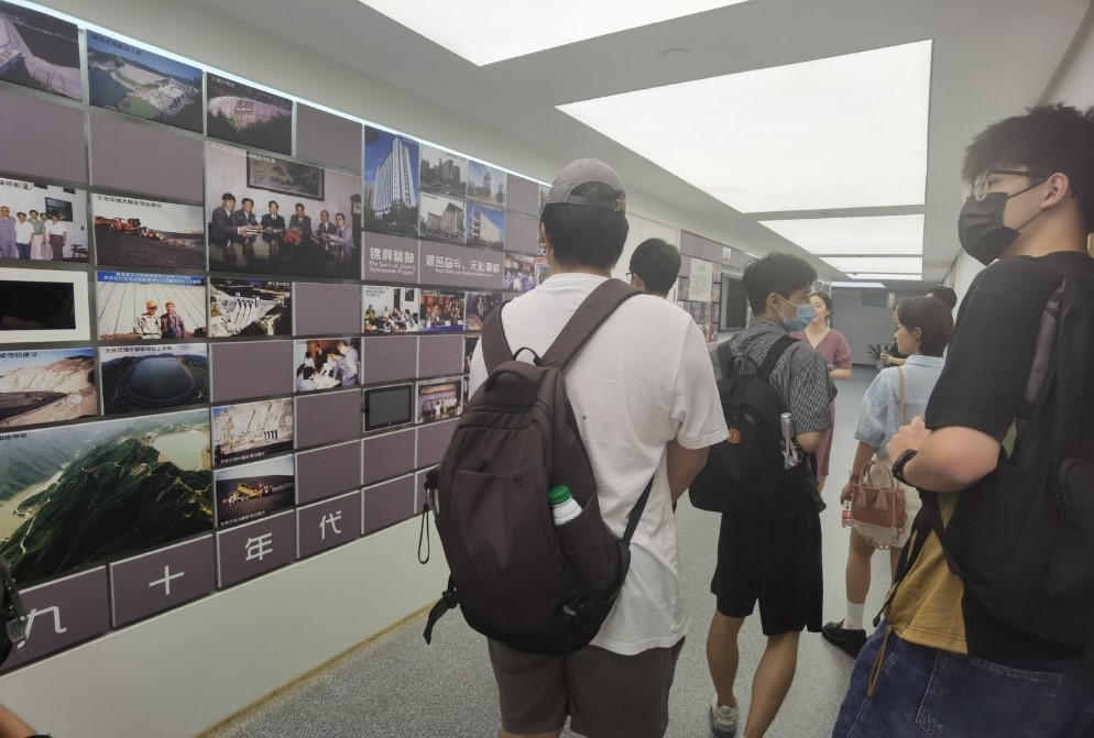 团队首先参观了华东院展厅,了解了华东院的发展历史、业务范围、企业荣誉、企业文化与企业精神。华东院是中国最早成立的勘测设计院之一,其以服务工程为使命,为国家大型综合性甲级勘测设计研究单位,业务范围包括水电与新能源、城乡建设、生态与环境等领域,努力打造具有工程全过程智慧化服务能力的一流国际工程公司。