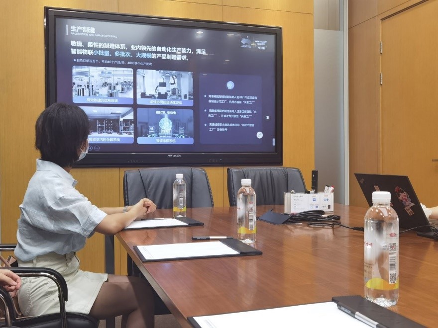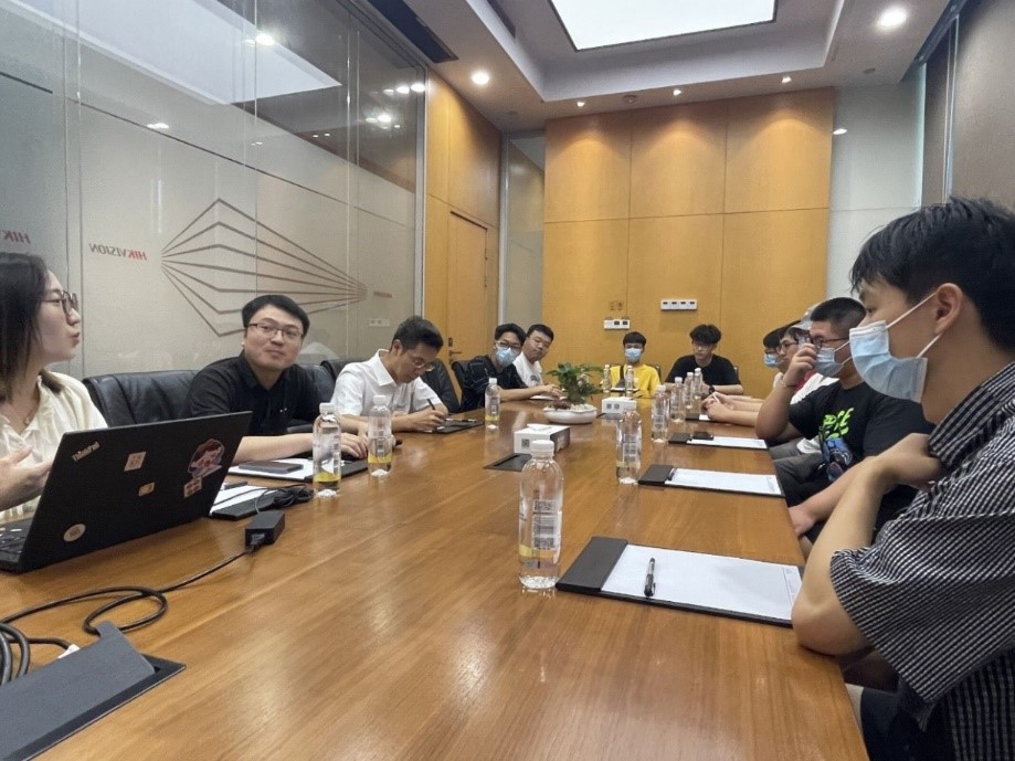 下午,实践队抵达位于杭州市滨江区的海康威视数字技术有限公司,在海康威视HR廉宏爽的带领下,实践团队对海康威视的业务内容、企业目标、企业文化及人才培养等方面的情况进行深入了解。