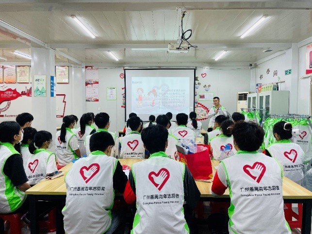 2022年7月6日上午,实践队员参加了广州南站地区志愿服务队开展的广州南站地区暑运志愿服务培训。