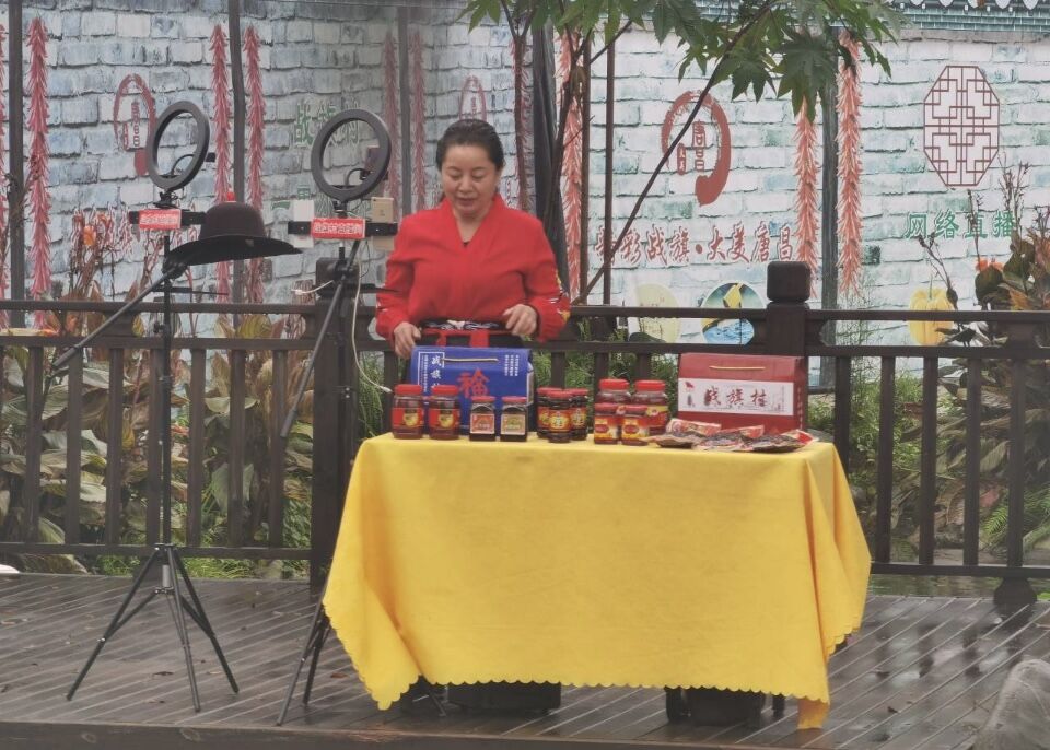 图 2 战旗村主播在宣传特色农产品—豆瓣酱