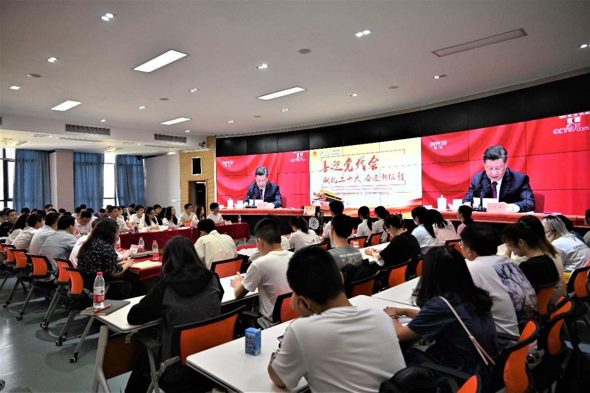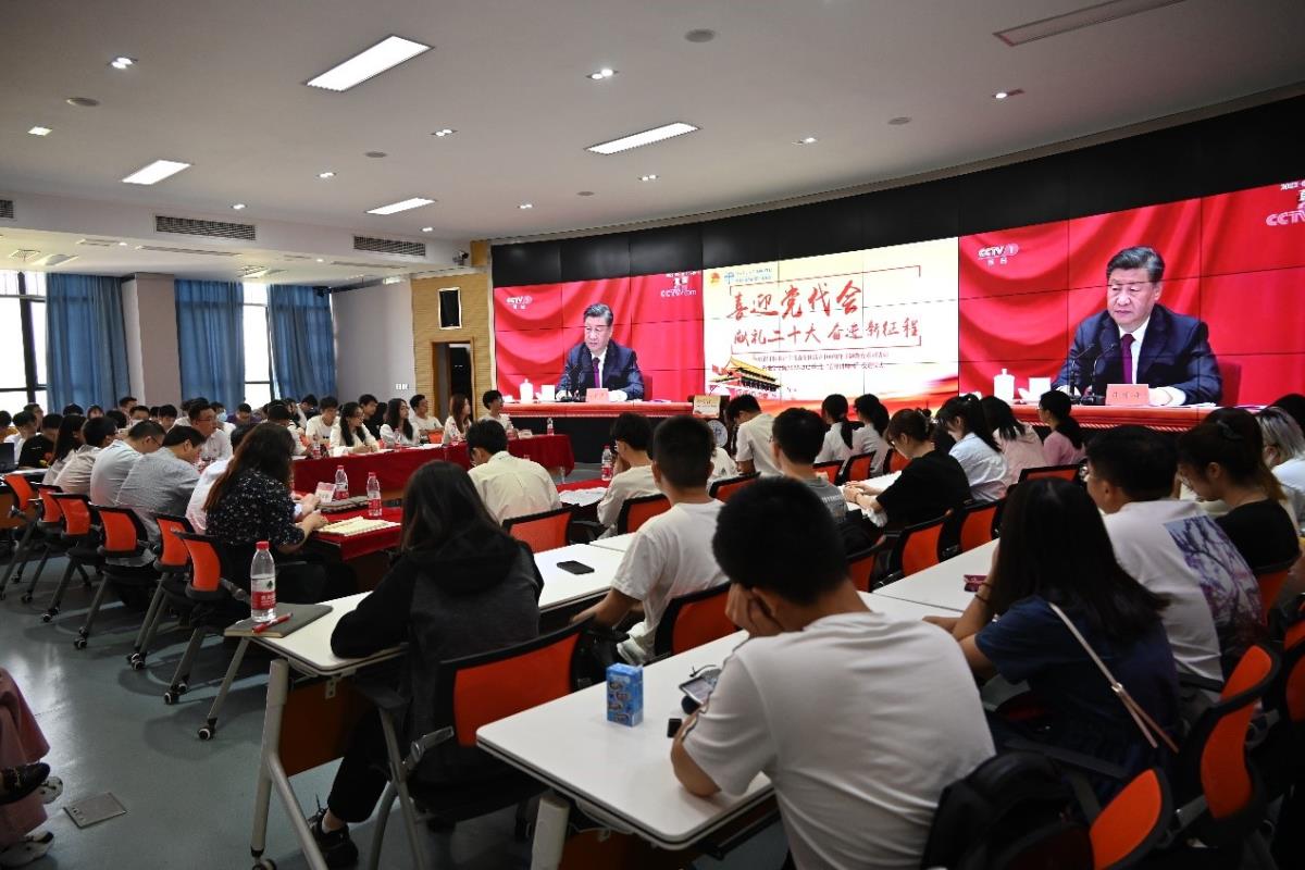 学院党委书记关秦川、党委副书记傅尤刚、团委书记杨都强,团委副书记翟琦、李婧、崔宇龙、董可及全体辅导员老师,学院青年讲师团全体成员、学生干部等一同观看。