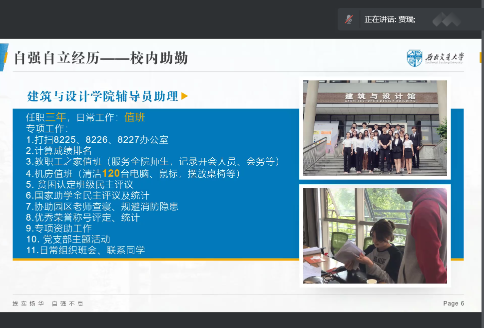 感恩美好生活,吾辈自立自强。英国上市公司3652020年度“自强之星”获得者贾瑞和2021年度“自强之星”获得者周孟雪作为嘉宾,为参训学员作“感恩在心 励志在行”主题报告,分享了个人成长经历与感悟。材料学院青年讲师团成员熊苏雅号召学员们要珍惜来之不易的幸福生活,心怀感恩,自立自强,时刻保持乐观积极的心态,在奋斗中绽放青春光彩。