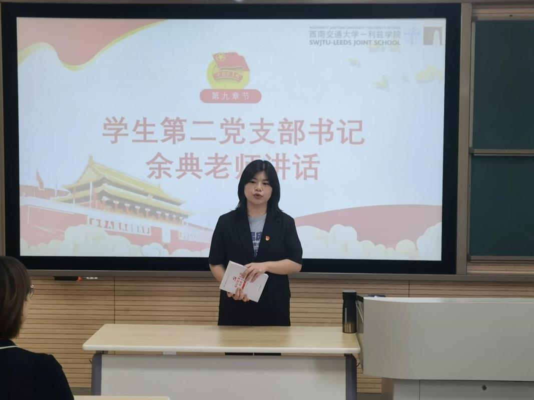 学生第二党支部书记余典为在场的新团员细致讲解了入党流程和具体要求,鼓励同学们积极入党,为党和国家奉献自己的力量。