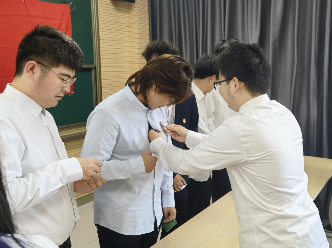 首先,全体参会人员起立,奏唱国歌。随后利兹学院团委书记陆宇佳宣布新入团团员名单并为其颁发团员证和团徽。所有与会团支部书记为本支部发展新团员佩戴团徽,代表支部表示对新团员的祝贺。