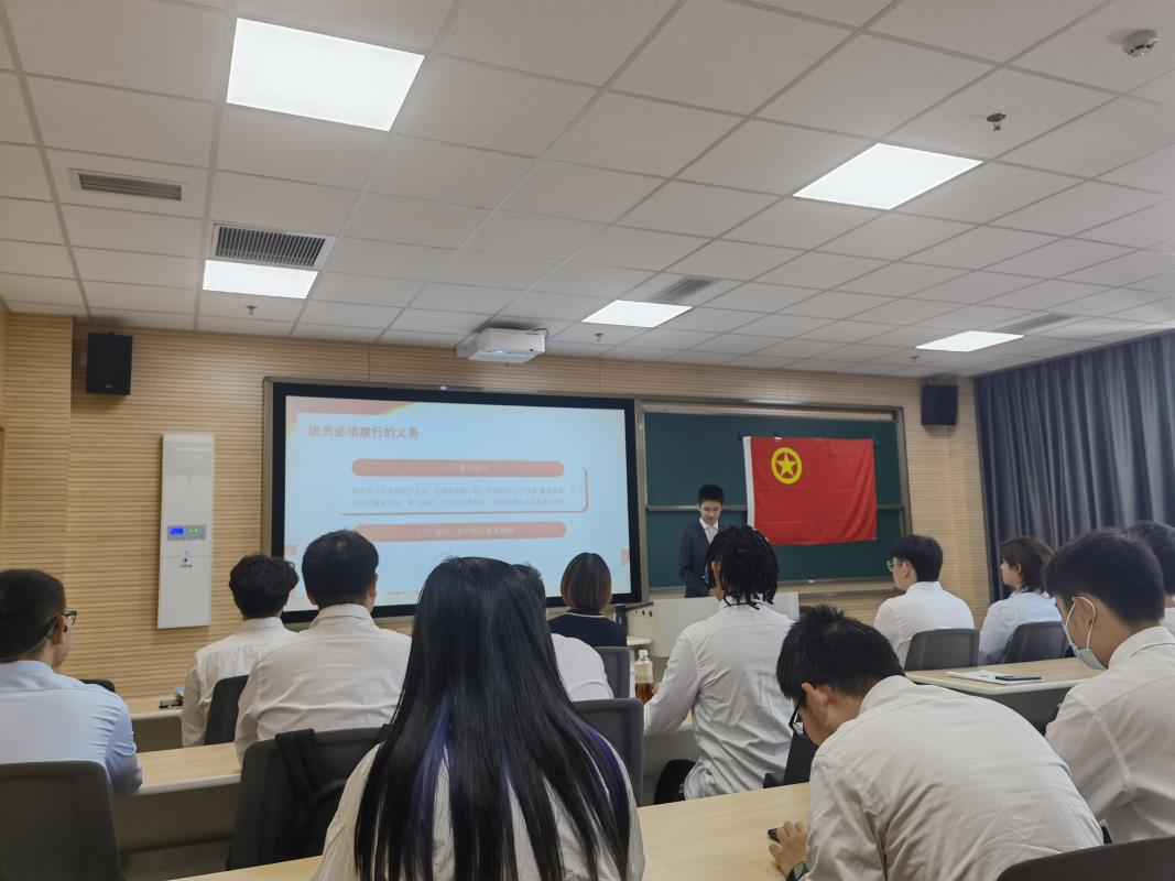入团宣誓结束后,班团联合会张昆宇同学带领新入团团员学习《中国共产主义青年团章程》中有关团员的义务和权利,希望新团员能够在今后切实履行团员义务,争做一名优秀共青团员。