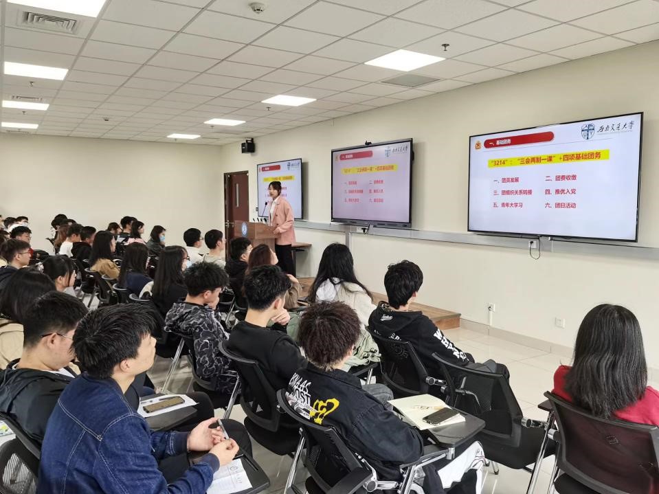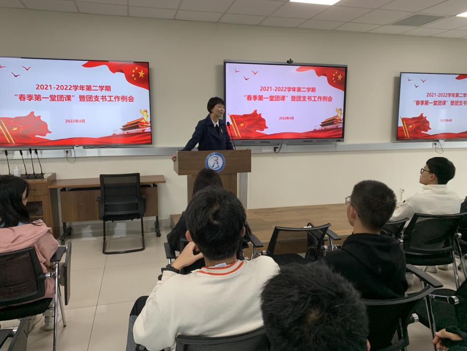 为庆祝建团100周年,持续深化团员思想意识,2022年4月15日,计算机与人工智能学院于X31541举行“春季第一堂团课”暨团支部书记工作例会。学院团委书记李萍、团委副书记徐洁、胡耀以及全院团支部书记参加团课。