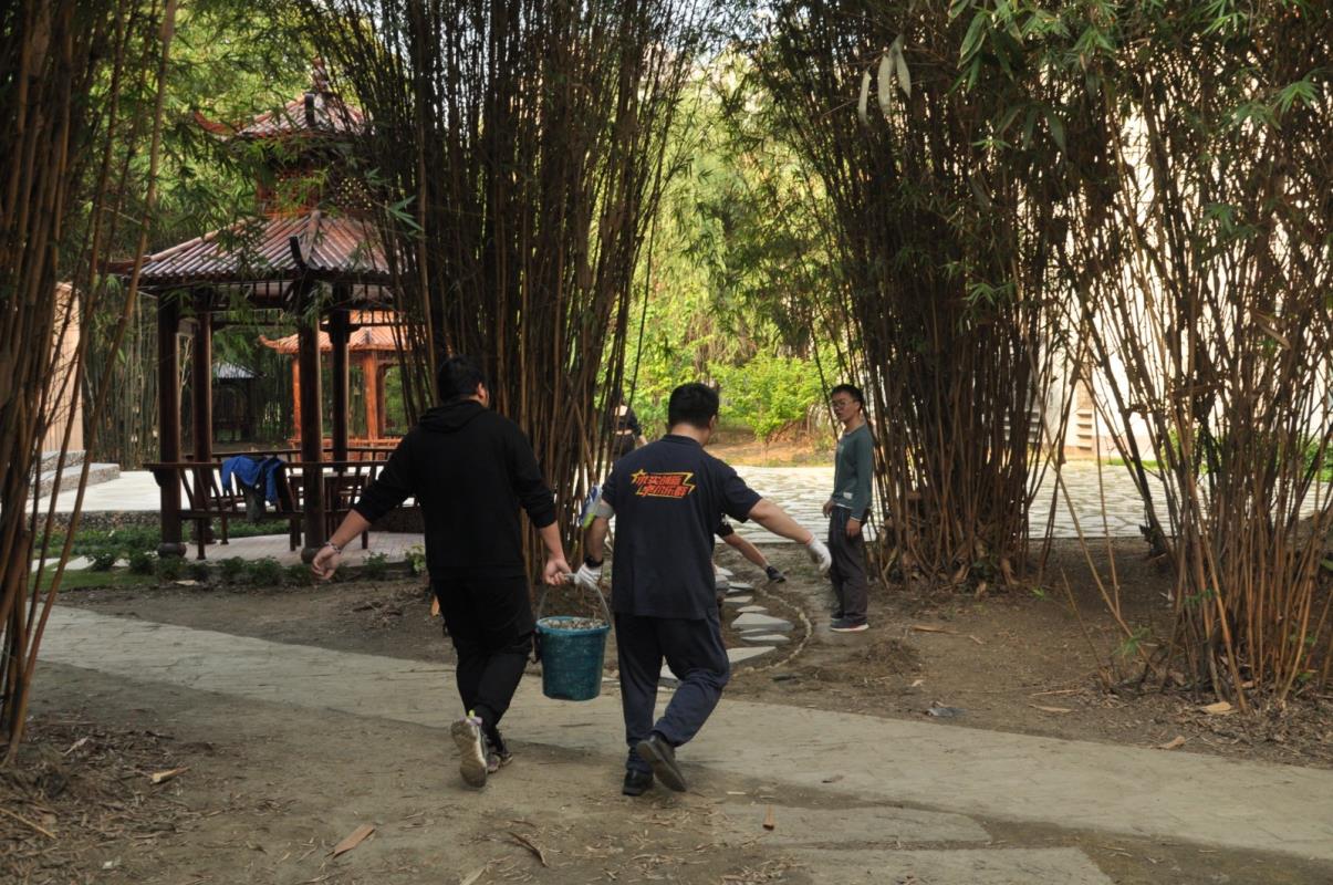 接下来,甘书记将同学们分成了七个小组,每组由一位老师带领。各组分派代表去领取了铺设所需桶 、锄头、 铲子等工具,并与带队老师一起前往筑梦园和书院前空地铺设小径。