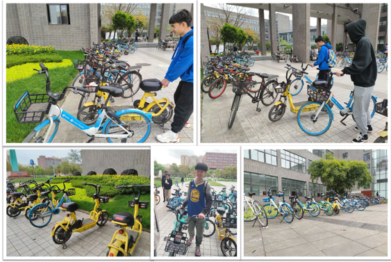 为营造良好的校园环境,规范校园内自行车的停放,在参观完校史馆后,同学们以小组为单位对在图书馆和四号教学楼外的停放的自行车进行扶正和有序摆放工作,对共享单车和个人的单车进行了合理的规整。